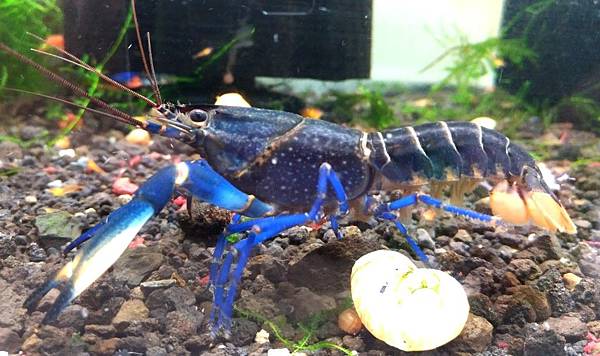 原產地在熱帶,雖然溫度比較可以耐熱,但水溫仍需保持在適溫環境飼養(24~27佳),幼體和亞成體與粉紅珊瑚相似,成長速度緩慢,成體後體色呈現寶藍色和星點分佈,大螯則較修長,飼養個性上比較害羞被動,抱蛋約5~6週。