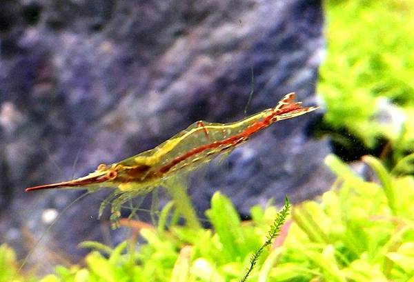特色除了超級長的紅色額角,體型也不輸大和藻蝦,身形苗條和噴銀河金點是一種美麗進口蝦,需降海繁殖。