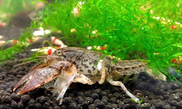 本身在產地分佈很廣,對水質溫度適應範圍很大。屬於圓鉗螯蝦中最多人認識的螯蝦,擁有圓潤身軀和肥扁小手,身上常帶時尚豹紋,很可愛的圓鉗入門螯蝦。本身很容易飼養,難度主要來自市場流通不多,價格稍高。