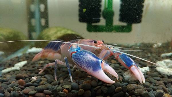 人工改良的觀賞螯蝦,同胎不同隻也會有不同表現,常見的有橘帶藍紫或藍紫帶橘。因藍橘的比例不同和花色變化等表現不一致,相對也會影響價格。