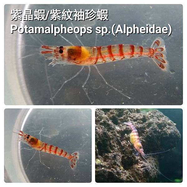 <div> <p style="text-align:center"><img alt="" src="https://pic.pimg.tw/jackyma309/1560353001-1062714792_n.jpg" title=""></p> </div> <div>紫晶蝦/紫紋袖珍蝦</div> <div>Potamalpheops sp.</div> <div>水溫:2228</div> <div>尺寸:11.5cm</div> <div>PH:78</div> <div>飼養難度:中等</div> <div> </div> <div>雖然常被當作淡水米蝦,但其實歸類在海水會開炮的槍蝦科(Alpheidae),產地臺灣,保持適溫就非常好養。飼養環境和蘇蝦相近,高硬度下反而適應更好,分佈於台灣南部廢棄魚塭或與海相通的溝渠內都有機會捕獲。</div> <div>可在淡水飼養,但本身其實為廣域蝦,飼養過程很容易抱蛋但不易見苗,如海水槍蝦的親戚般,都是鬥雞眼的感覺XD.</div> <div> </div> <div>#馬游游水族購</div> <div> </div> <div> <p style="text-align:center"><img alt="" src="https://pic.pimg.tw/jackyma309/1560353042-1238947847_n.jpg" title=""></p> </div> <div> </div> <div> <div> <div style="color: rgb(34, 34, 34); font-size: 13.2px; font-style: normal; font-variant-ligatures: normal; font-variant-caps: normal; font-weight: 400; letter-spacing: normal; orphans: 2; text-align: start; text-indent: 0px; text-transform: none; white-space: normal; widows: 2; word-spacing: 0px; -webkit-text-stroke-width: 0px; text-decoration-style: initial; text-decoration-color: initial; background-color: white; font-family: "times new roman"; margin: 0px;"> <div style="color: rgb(34, 34, 34); font-size: 13.2px; font-style: normal; font-variant-ligatures: normal; font-variant-caps: normal; font-weight: 400; letter-spacing: normal; orphans: 2; text-align: start; text-indent: 0px; text-transform: none; white-space: normal; widows: 2; word-spacing: 0px; -webkit-text-stroke-width: 0px; text-decoration-style: initial; text-decoration-color: initial; background-color: white; font-family: "times new roman"; margin: 0px;"><a href="https://lin.ee/2hrpu4R" style="text-decoration: none; color: rgb(136, 136, 136);" target="_blank"><img alt="加入好友" border="0" height="36" src="https://scdn.line-apps.com/n/line_add_friends/btn/zh-Hant.png" style="border: 1px solid rgb(238, 238, 238); position: relative; padding: 5px; background: rgb(255, 255, 255); box-shadow: rgba(0, 0, 0, 0.1) 1px 1px 5px;" title=""></a></div> <div style="color: rgb(34, 34, 34); font-size: 13.2px; font-style: normal; font-variant-ligatures: normal; font-variant-caps: normal; font-weight: 400; letter-spacing: normal; orphans: 2; text-align: start; text-indent: 0px; text-transform: none; white-space: normal; widows: 2; word-spacing: 0px; -webkit-text-stroke-width: 0px; text-decoration-style: initial; text-decoration-color: initial; background-color: white; font-family: "times new roman"; margin: 0px;"> </div> <div style="color: rgb(34, 34, 34); font-size: 13.2px; font-style: normal; font-variant-ligatures: normal; font-variant-caps: normal; font-weight: 400; letter-spacing: normal; orphans: 2; text-align: start; text-indent: 0px; text-transform: none; white-space: normal; widows: 2; word-spacing: 0px; -webkit-text-stroke-width: 0px; text-decoration-style: initial; text-decoration-color: initial; background-color: white; font-family: "times new roman"; margin: 0px;"><a href="http://creativecommons.org/licenses/by-nc-sa/4.0/" rel="license" style="text-decoration: none; color: rgb(136, 136, 136);"><img alt="創用 CC 授權條款" src="https://i.creativecommons.org/l/by-nc-sa/4.0/88x31.png" style="border: 0px solid rgb(238, 238, 238); position: relative; padding: 5px; background: rgb(255, 255, 255); box-shadow: rgba(0, 0, 0, 0.1) 1px 1px 5px;" title=""></a></div> <div style="color: rgb(34, 34, 34); font-size: 13.2px; font-style: normal; font-variant-ligatures: normal; font-variant-caps: normal; font-weight: 400; letter-spacing: normal; orphans: 2; text-align: start; text-indent: 0px; text-transform: none; white-space: normal; widows: 2; word-spacing: 0px; -webkit-text-stroke-width: 0px; text-decoration-style: initial; text-decoration-color: initial; background-color: white; font-family: "times new roman"; margin: 0px;">本著作係採用<a href="http://creativecommons.org/licenses/by-nc-sa/4.0/" rel="license" style="text-decoration: none; color: rgb(136, 136, 136);">創用 CC 姓名標示-非商業性-相同方式分享 4.0 國際 授權條款</a>授權.</div> </div> </div> </div> <div> </div>